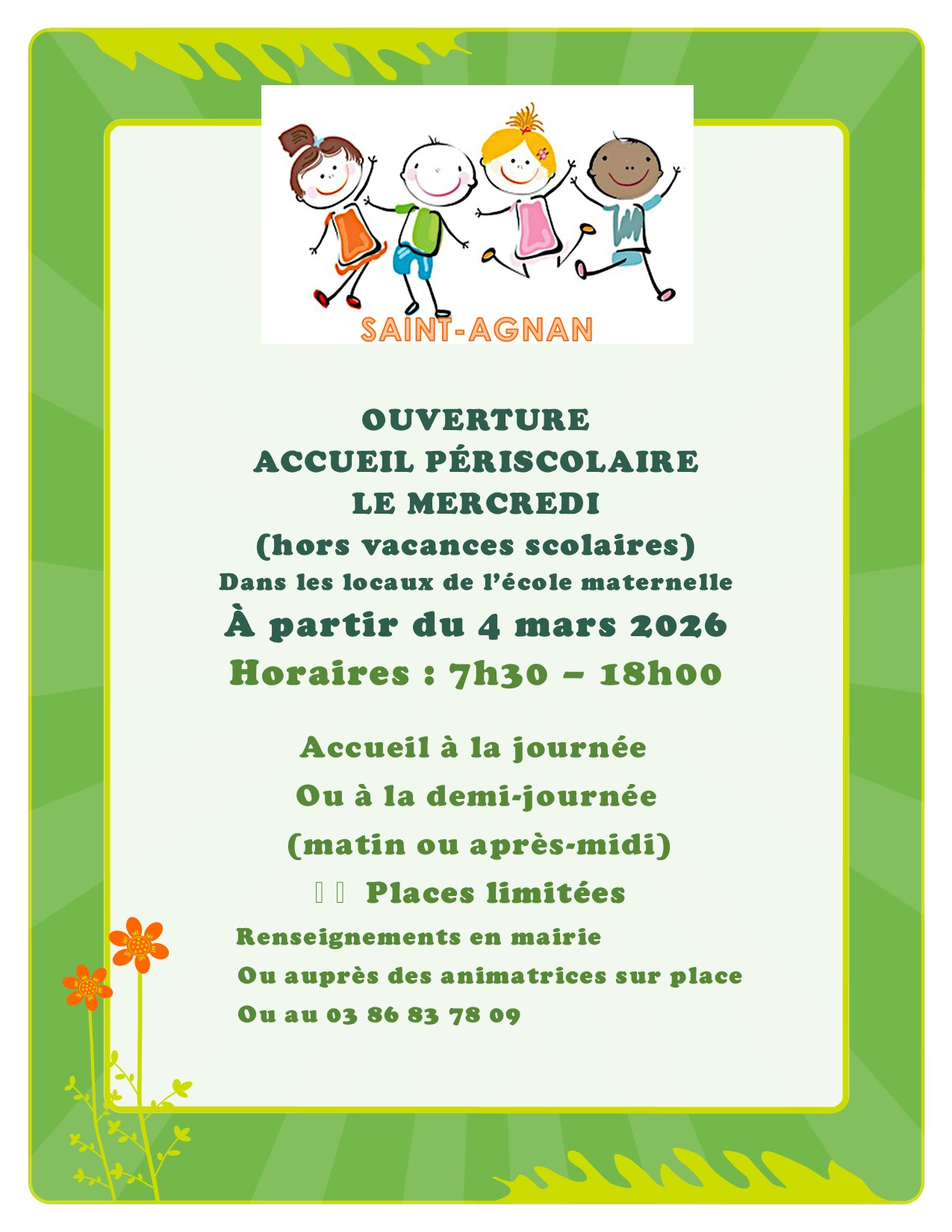 Ouverture le 4 mars 2026 d'un accueil périscolaire le mercredi dans les locaux de l'école maternelle